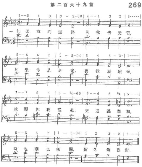 一 如果我的道路引我去受苦, 如果你是命定,要我歷艱辛, 就願你我從茲,交通益親摯, 時也刻也無間,彌久彌香甜。