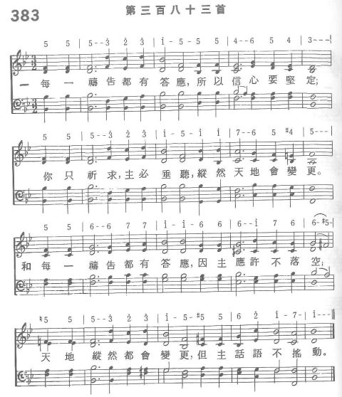 一 每一禱告都有答應,所以信心要堅定; 你只祈求,主必垂聽,縱然天地會變更。