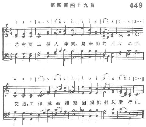 一 若有兩三個人聚集,是奉祂的至大名字, 交通,工作就都甜蜜,因爲他們以愛行止。