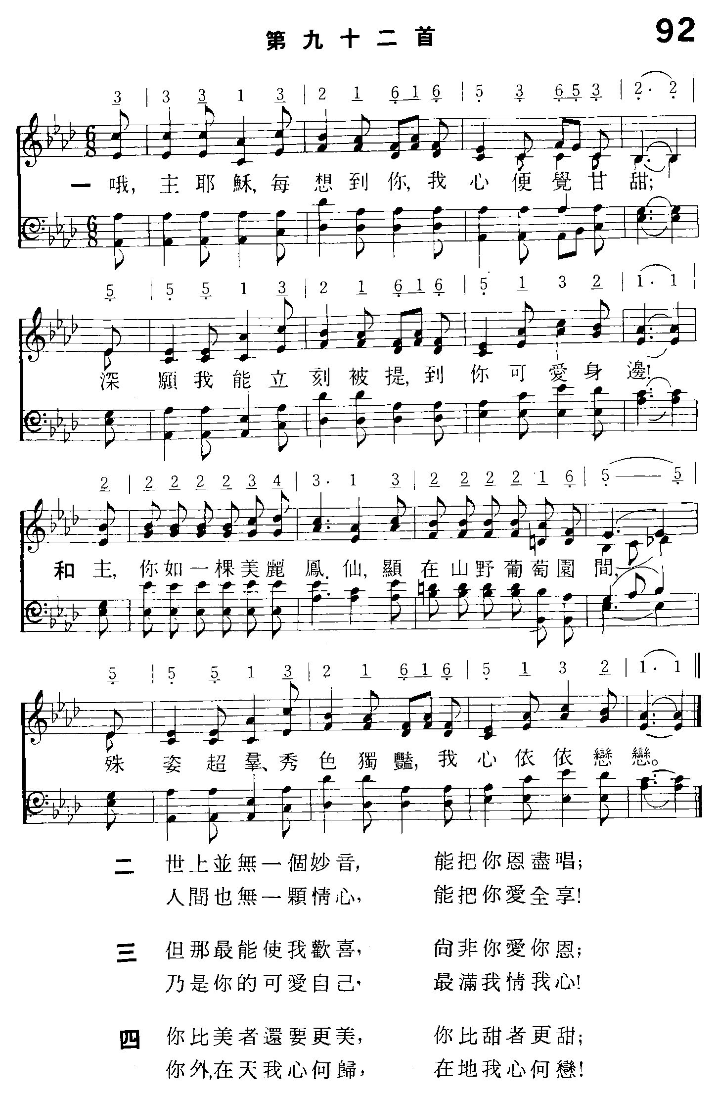 哦,主耶穌,每想到祢,我心便覺甘甜;