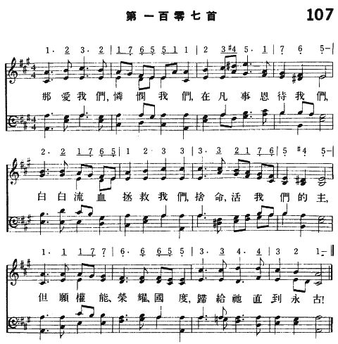 那愛我們,憐憫我們,在凡事恩待我們, 白白流血拯救我們,捨命,活我們的主, 但願權能、榮耀,國度,歸給祂直到永古!