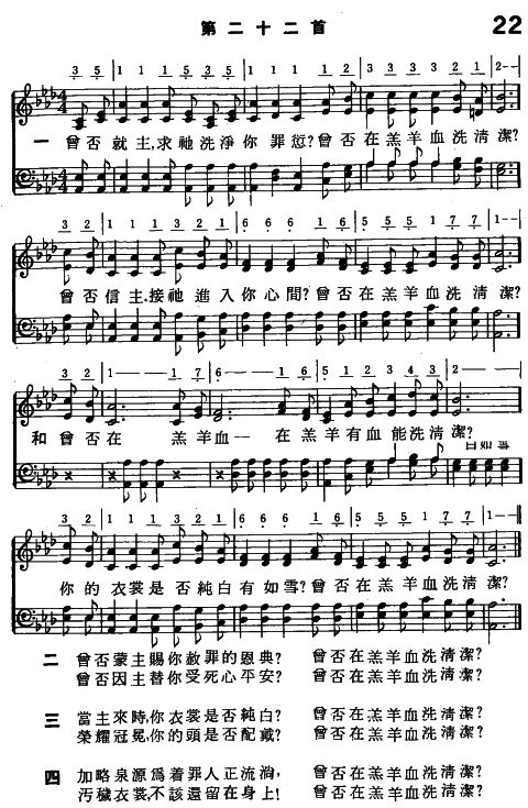 曾否在羔羊血——在羔羊有血能洗清潔?