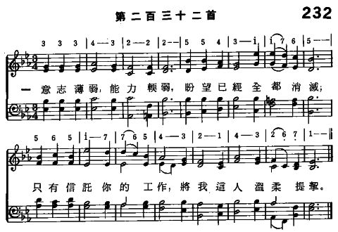 一 意志薄弱,能力軟弱,盼望已經全都消滅, 只有信託你的工作,將我這人溫柔提挈。