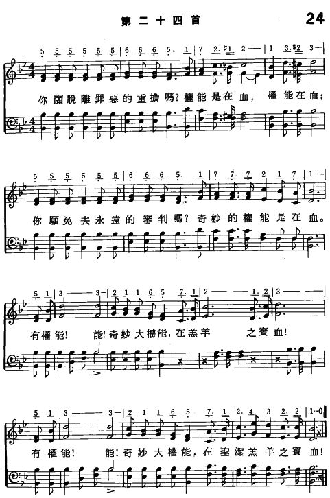 你願脫離罪惡的重擔嗎?權能是在血,權能在血;