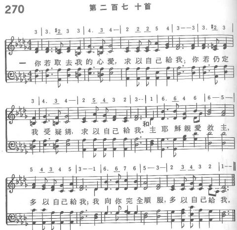 一 你若取去我的心愛,求以自己給我; 你若仍定我受疑猜,求以自己給我。