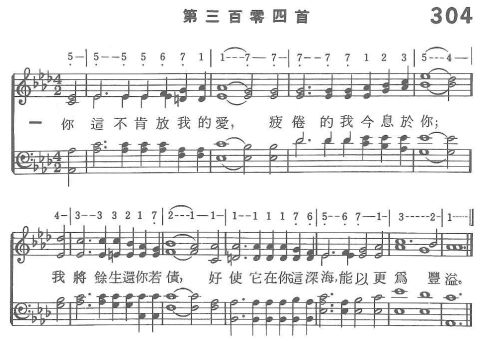 一 祢這不肯放我的愛,疲倦的我今息於祢; 我將餘生還祢若債,好使它在祢這深海,能以更為豐溢。
