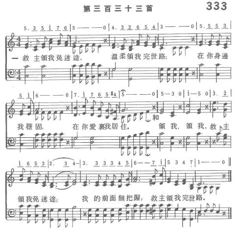 副歌 領我,領我,救主領我免迷途; 我的前面無把握,救主領我完世路。
