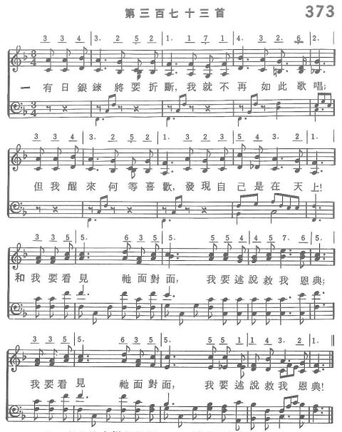 一 有日銀鍊將要折斷,我就不再如此歌唱; 但我醒來何等喜歡,發現自己是在天上!