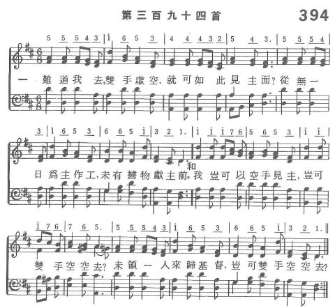 一 難道我去,雙手虛空,就可如此見主面? 從無一日為主作工,未有擄物獻主前。