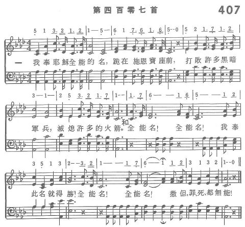 副歌 全能名!全能名!我奉此名就得勝! 全能名!全能名!撒但、罪、死,都無能!