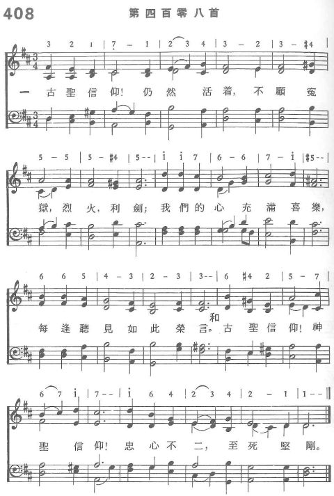 一 古聖信仰!仍然活著,不顧冤獄、烈火、利劍; 我們的心充滿喜樂,每逢聽見如此榮言。