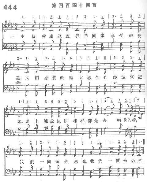 主擧愛旗遮蓋我們同來享受祂愛筵;