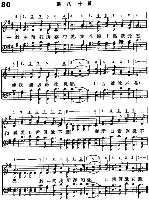 副歌 祂愛口舌真說不盡!祂愛口舌真說不盡! 救主向我所存的愛,口舌真說不盡!
