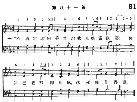 “不再定罪!”何等希奇!我魂,應當歡喜! 你罪已經都歸耶穌,祂死使你得甦。